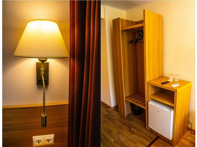 Здесь к вашим услугам сплит-система, холодильник и телевизор.